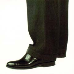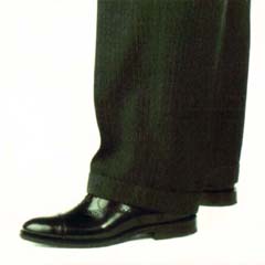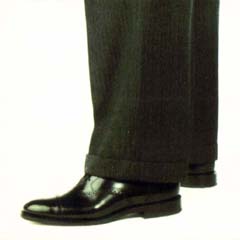 In most cases the pleaded pant go whit cuff, the flat front go with plan bottom. Usually we recommend the medium break, exactly to the heels of the shoes. It depends of the preferences of the customer.